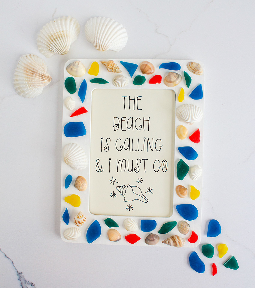 To learn how to make your own faux sea glass picture frame, keep on reading!