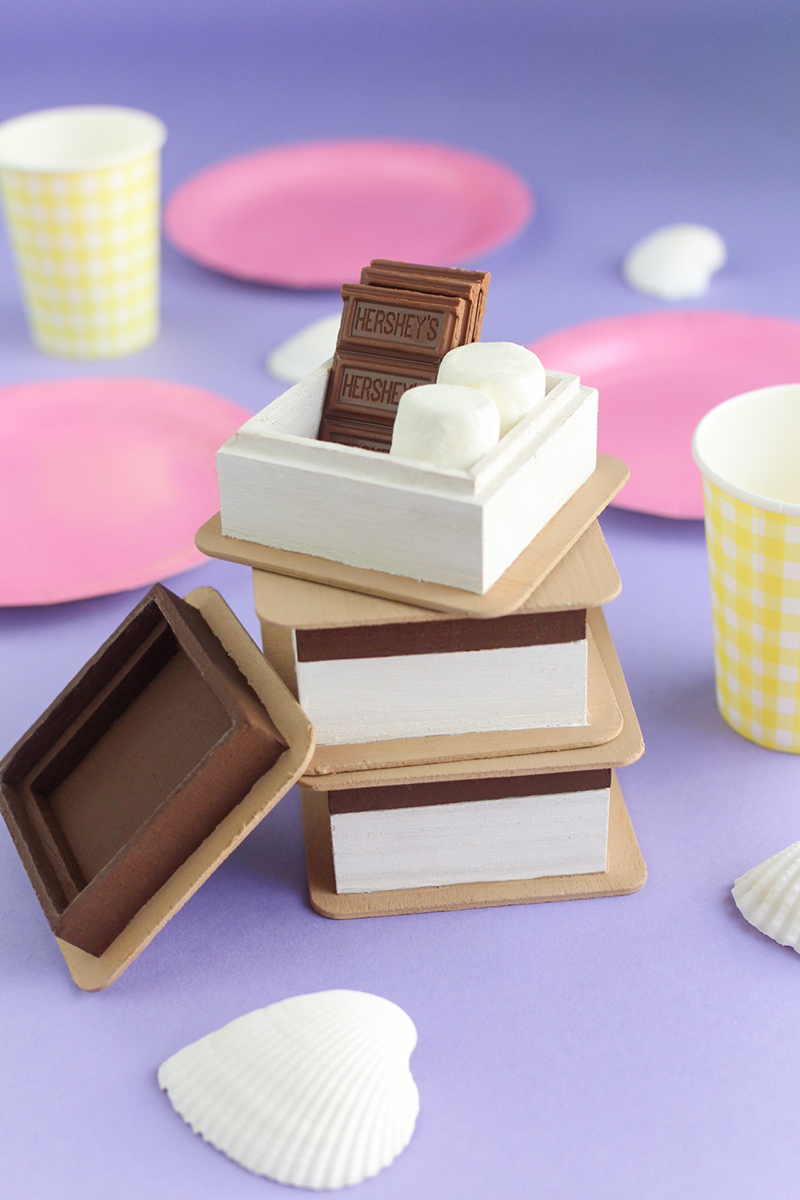 This DIY is so simple that I don't even need to do a step by step tutorial for it - simply paint your boxes so that they look like s'mores and you're finished!