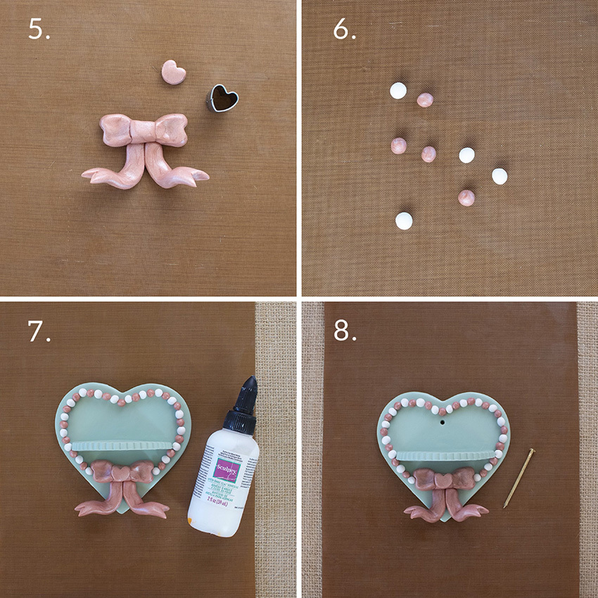 Step 5) Create a bow using the Rose Gold Metallic clay. Use a mini heart cutter to create a mini heart to go on top of the bow.